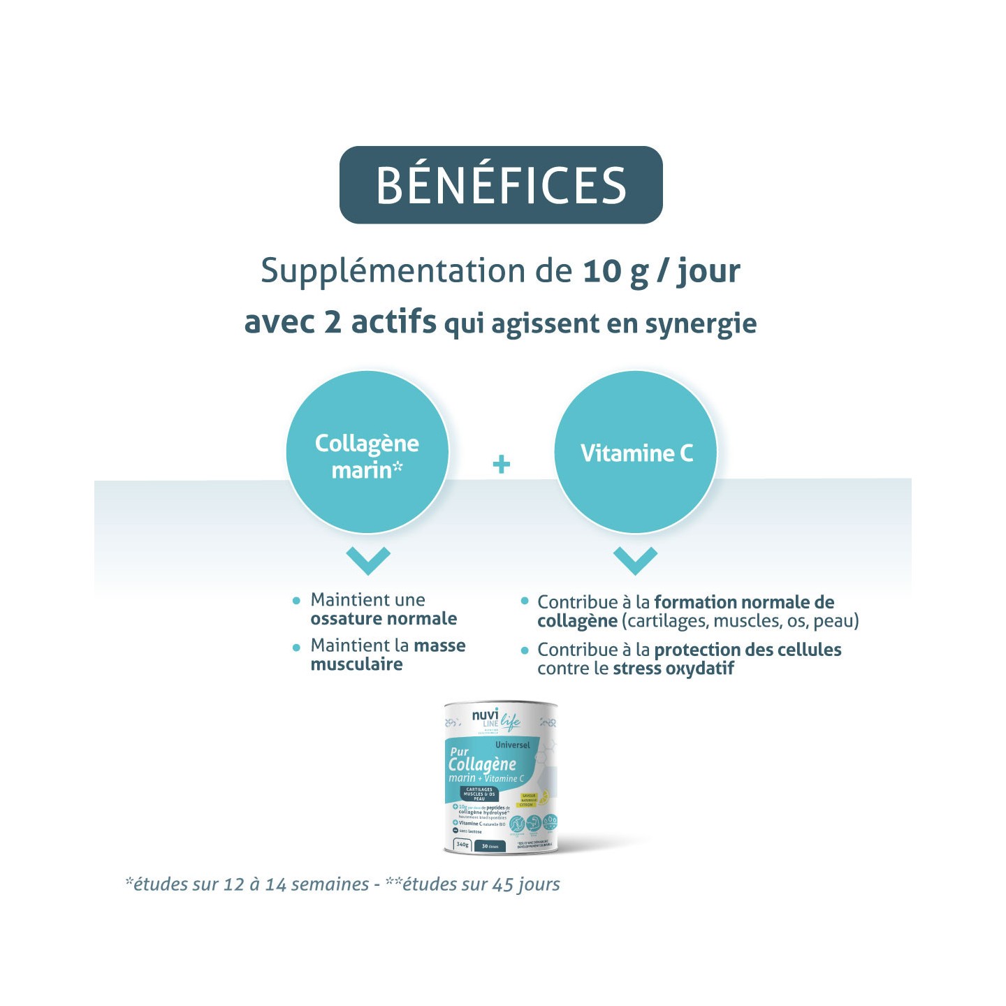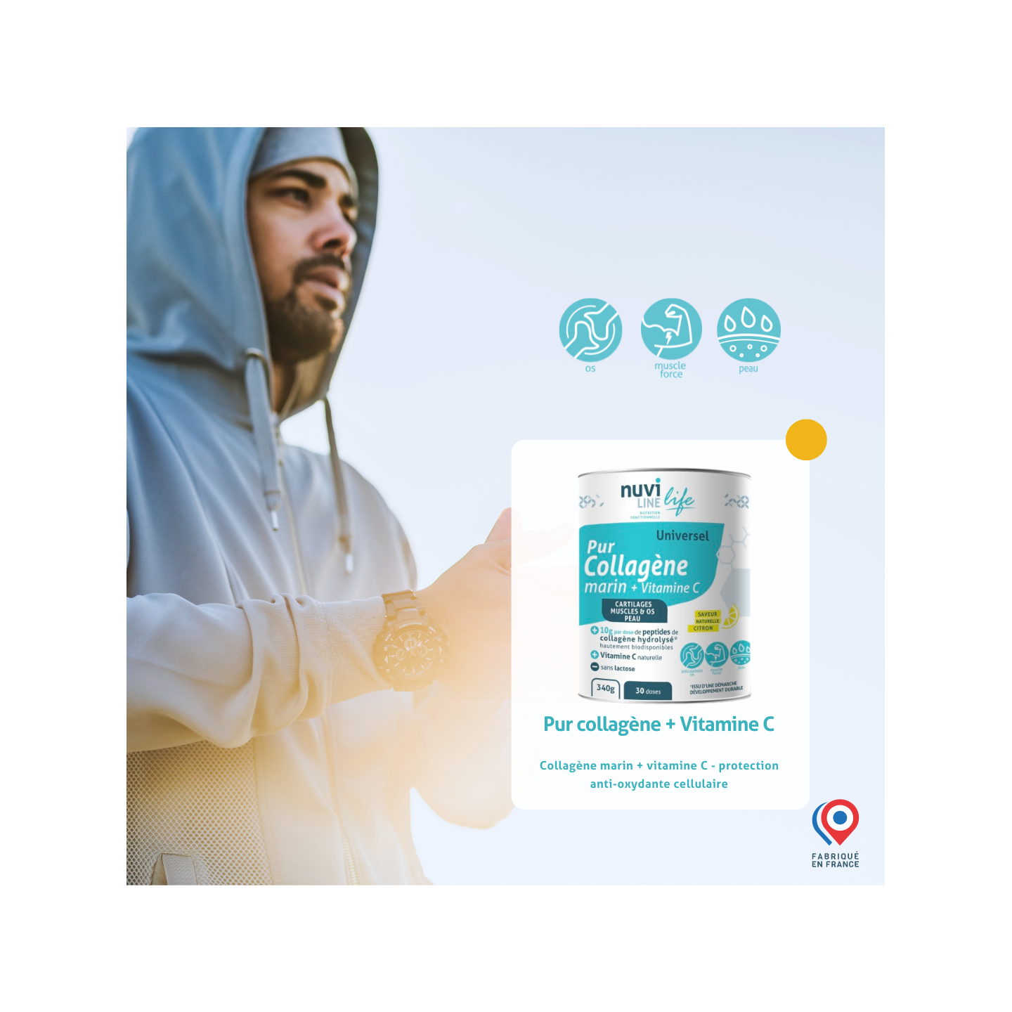 - Collagen is a component naturally present in the body (muscles, skin, bones, tendons, cartilage, hair, nails, etc.) where it plays a major role in support and/or elasticity.