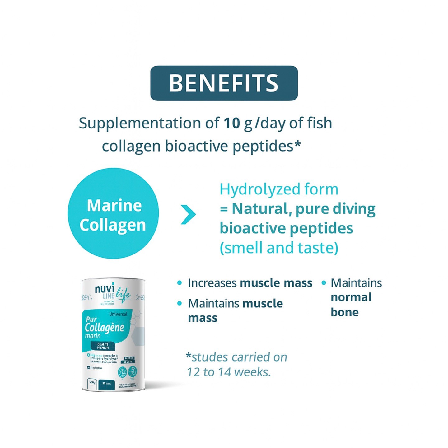 - It is made up of proteins in the form of a unique bioactive peptide profile (enzymatic hydrolysis) of natural marine collagen from a sustainable development approach (ASC Aquaculture Stewardship Council, BAP Best Aquaculture Practice, and MSC sustainable fishing labels).