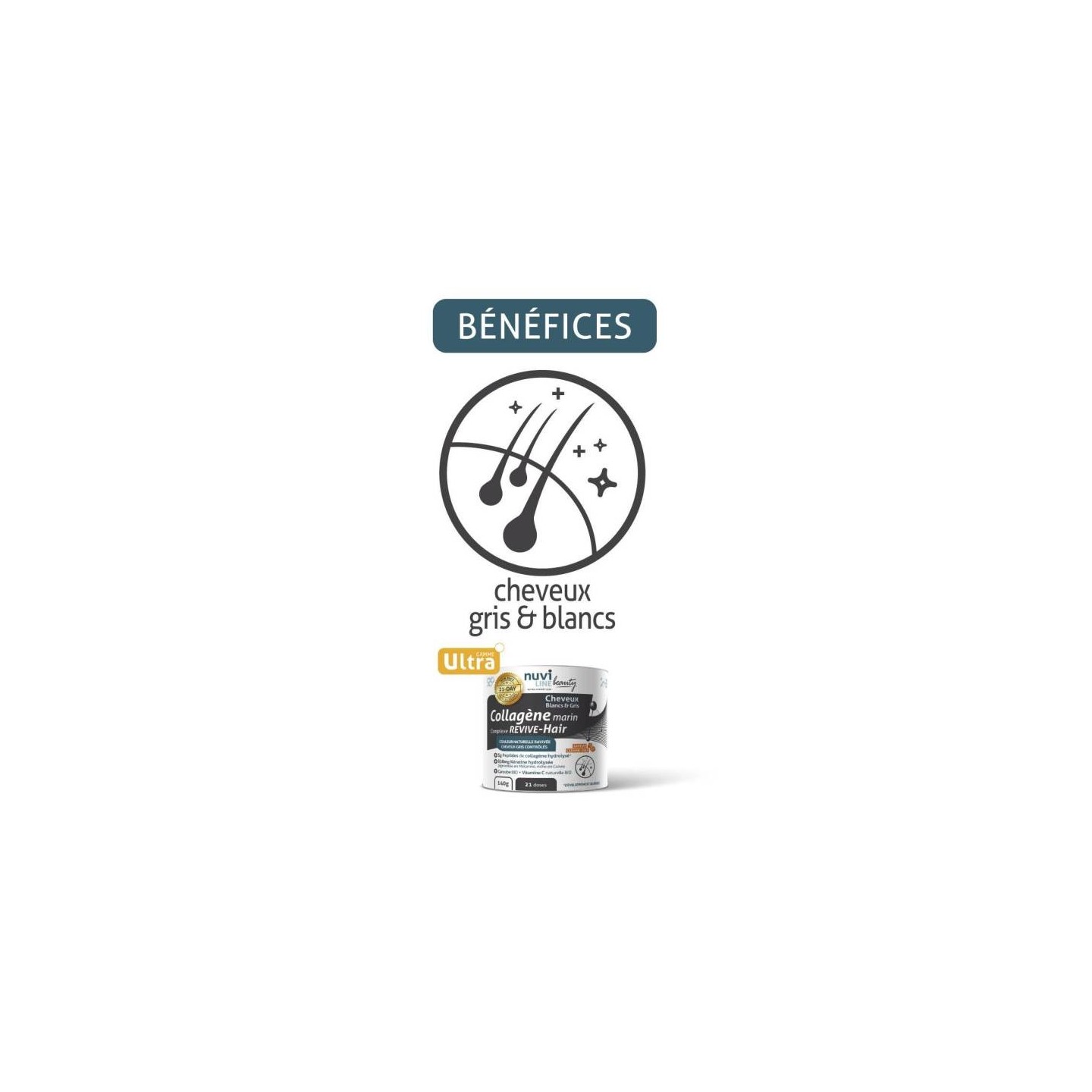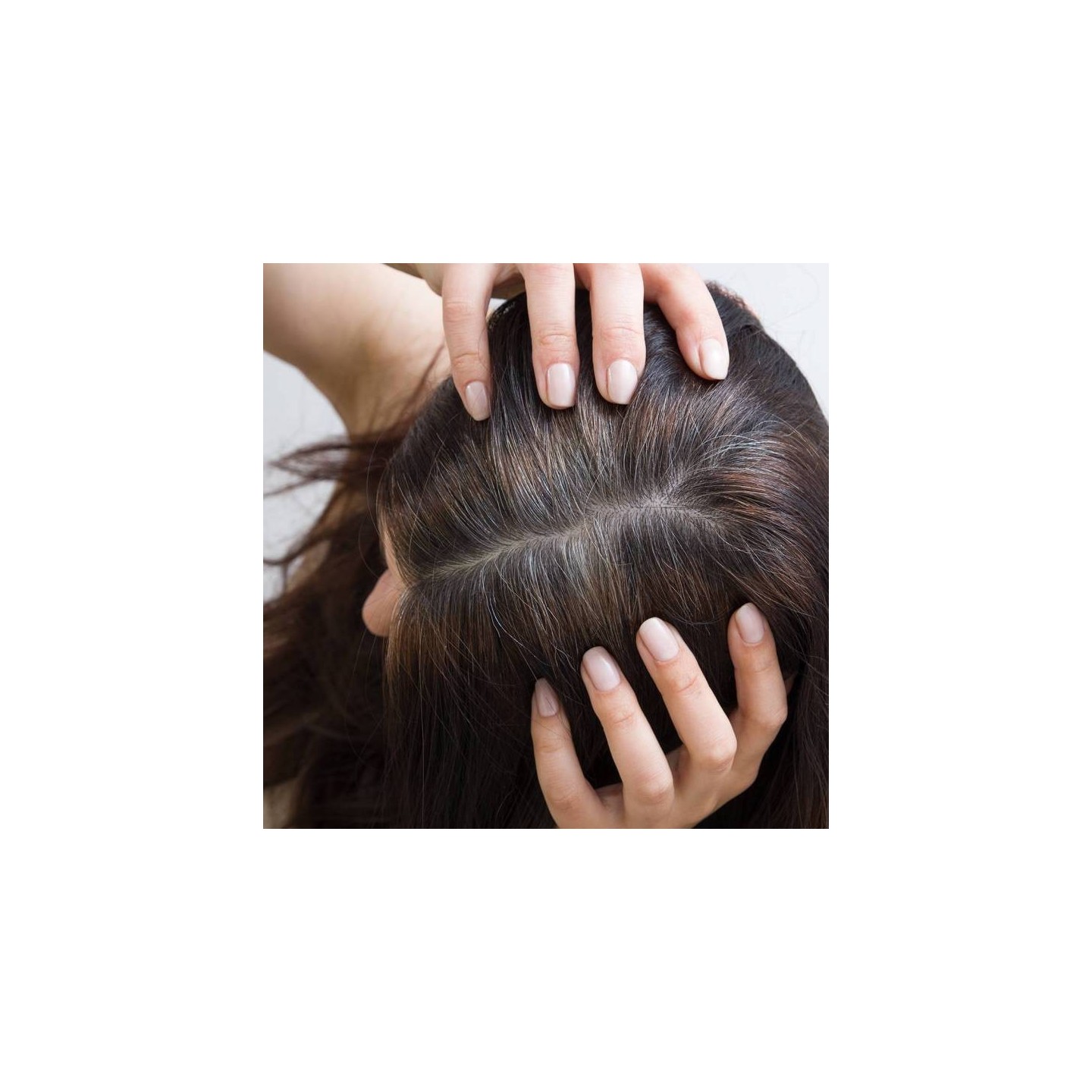 - Progressively helps hair regain its natural color and thus combats premature hair aging by stimulating the hair bulb and melanocytes.