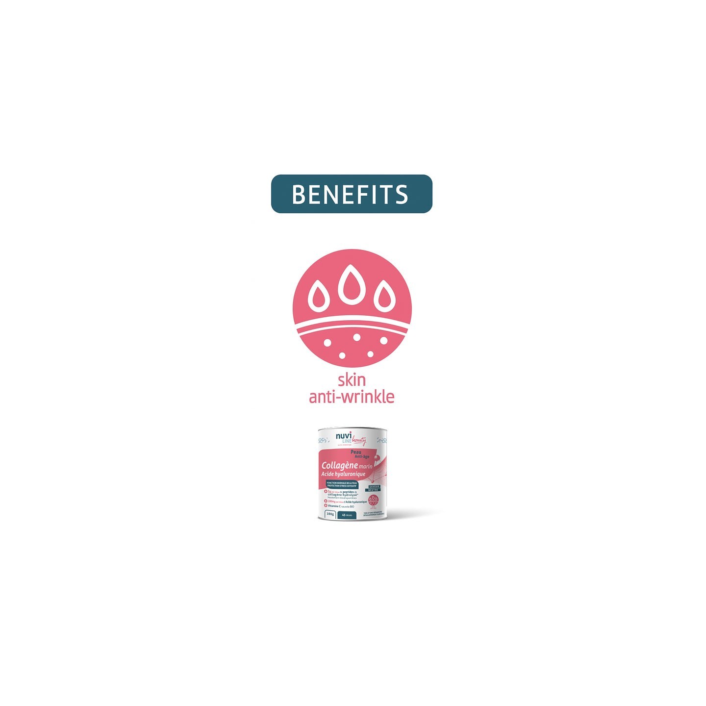 It has a nourishing action 'from within': it can therefore be used as a complement to a topical solution (e.g. cosmetic cream) whose effect is necessarily limited when applied to the skin because the skin barrier prevents the absorption of active ingredients considered foreign to the body. On the other hand, when we drink or ingest collagen, most of it is absorbed by the intestinal walls and properly used by the skin.