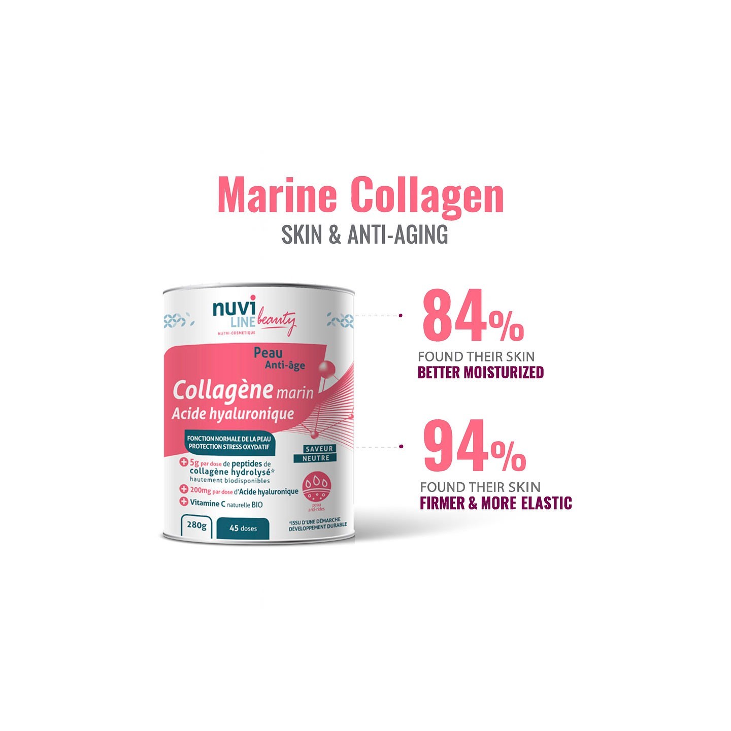 - It consists of proteins in the form of hydrolysed peptides (enzymatic hydrolysis) bioactive natural marine collagen from a sustainable development approach (ASC Aquaculture Stewardship Council, BAP Best Aquaculture Practice, and MSC sustainable fishing labels).