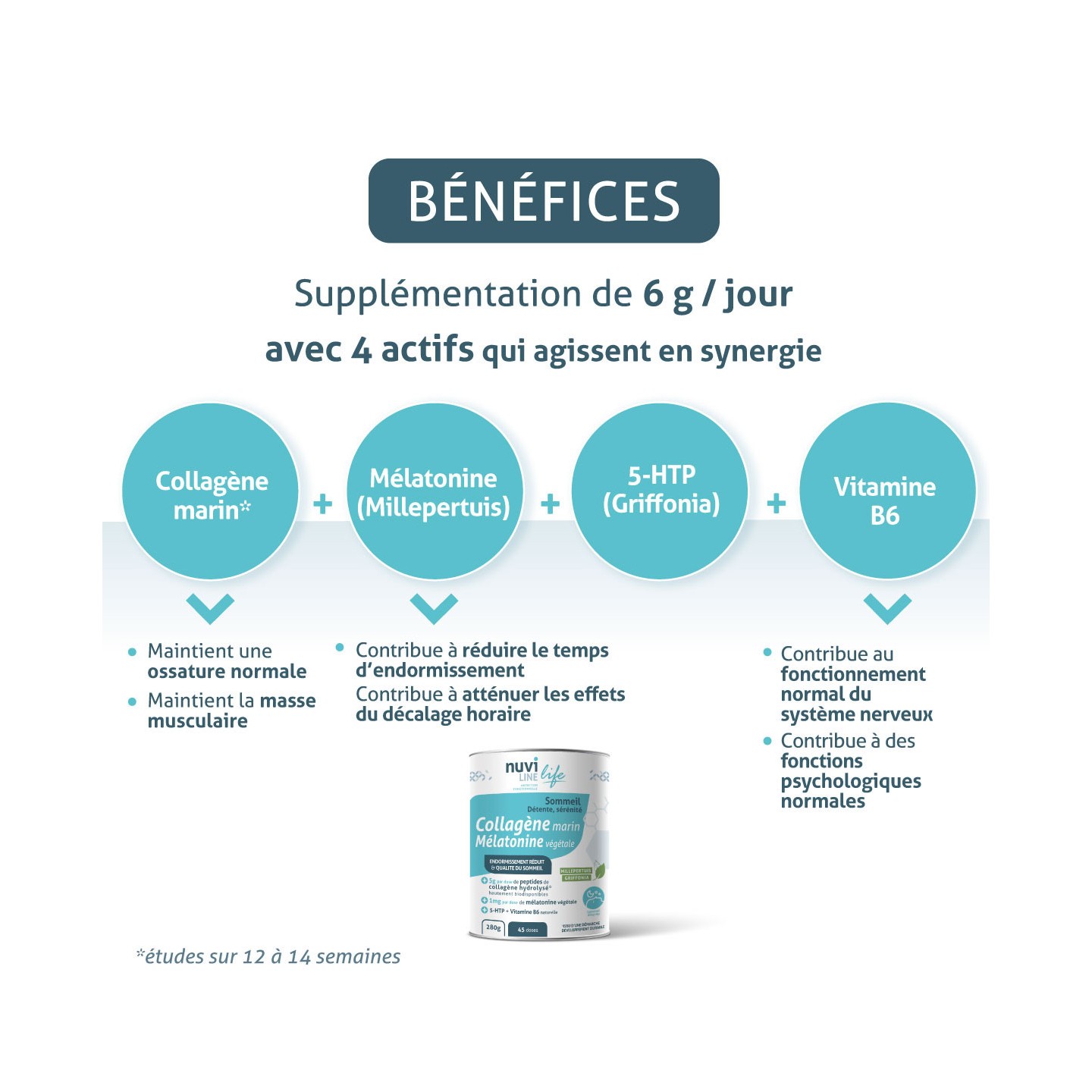 - It is particularly suitable when collagen protein intake is insufficient and/or needs are increased: advanced age, convalescence, sporting activities, pregnancy or breast-feeding... To (re)find joint mobility, muscle strength, tissue elasticity and improve overall well-being.